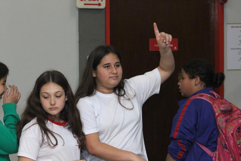 A pequena Letícia Machado Brunelio integra o grupo de estudantes do 6º Ano que realizou a visita guiada. A menina revela que gostou de vivenciar a experiência.