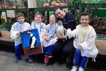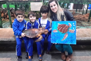 Na escola, os estudantes exploram estudos sobre cores, texturas, expressão artística e produção de obras. Além disso, aprofundam o conhecimento sobre os animais relacionados à temática escolhida, assim como a consciência planetária.