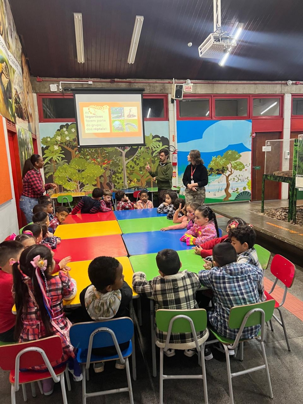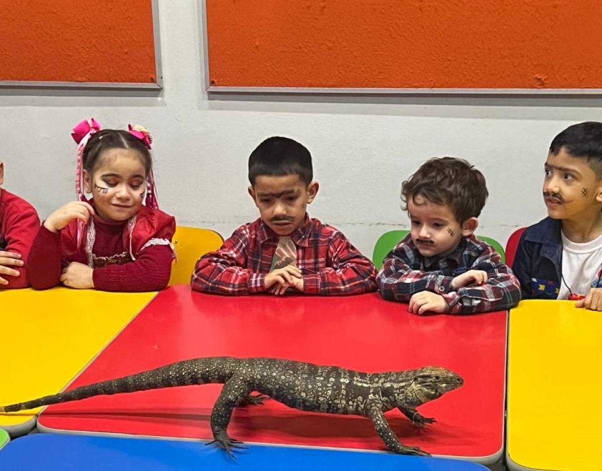 A proposta inicia-se com uma abordagem introdutória feita pelo professor em sala de aula. Em seguida, a turma realiza uma visita ao Museu de Zoologia, na data previamente agendada. Nesse momento, a equipe do Museu recebe os estudantes com o apoio de exemplares da coleção didática, proporcionando uma vivência mais próxima dos conteúdos estudados e das espécies envolvidas.